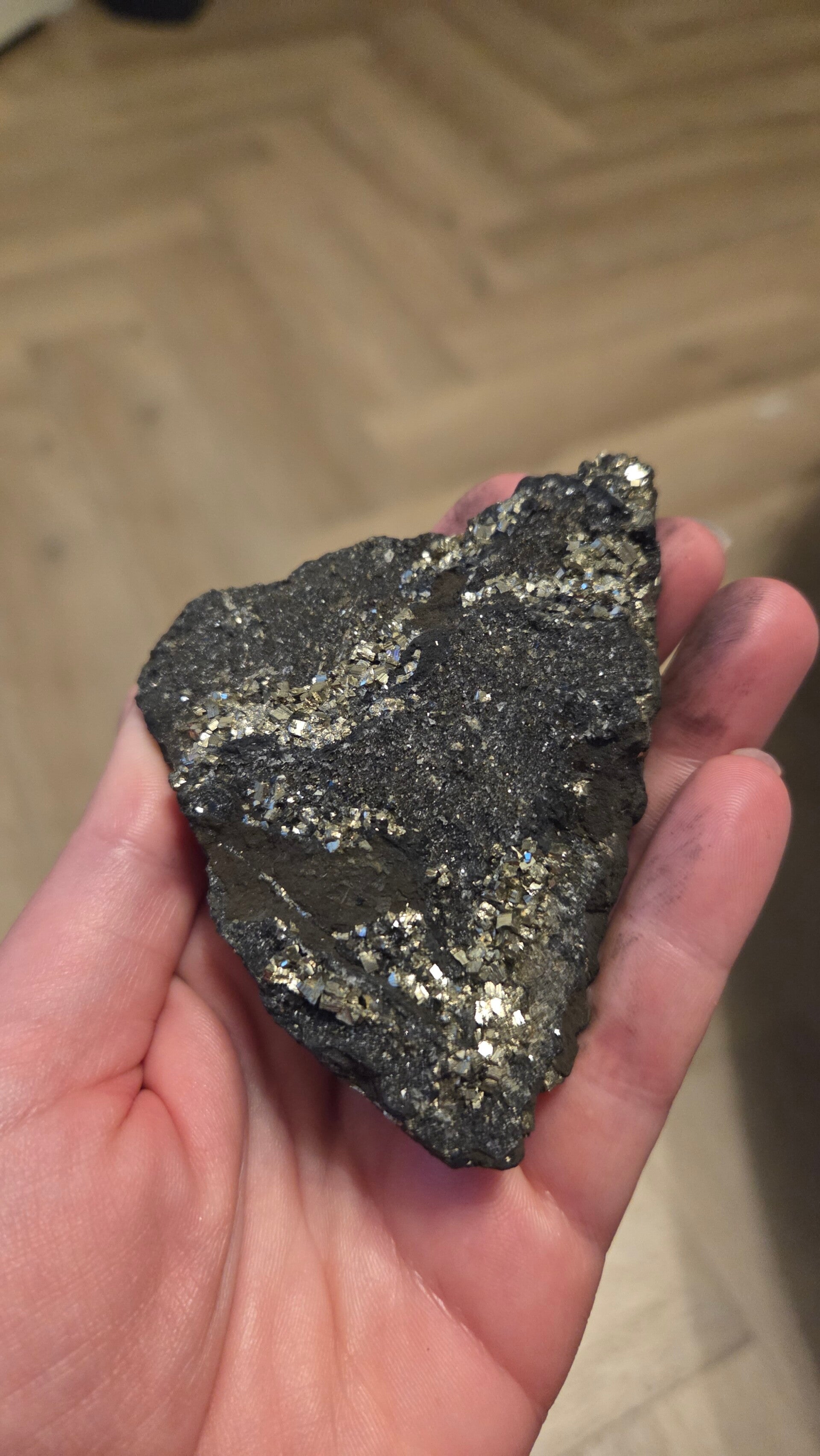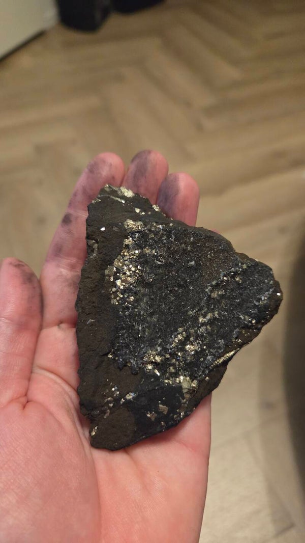 Een prachtig stuk shungiet met pyriet insluitsels. Dit mineraal weegt 137 gram en meet ongeveer 9 x 6,5 cm. Shungiet staat bekend om zijn vermeende beschermende eigenschappen en pyriet om zijn glans en energie. Een mooie toevoeging aan elke mineralen collectie!1