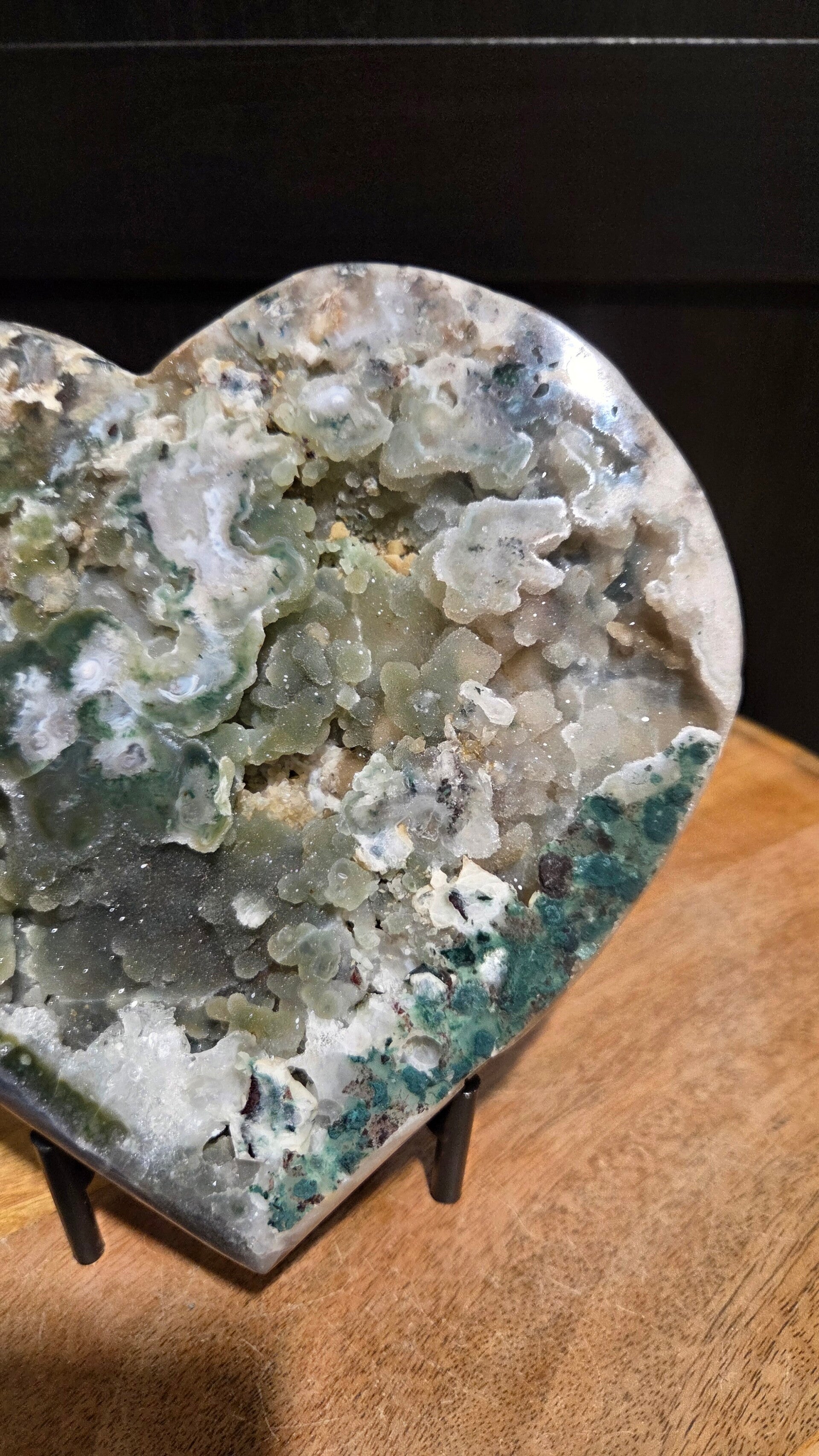 Prachtig amethist hart met een unieke sugar druze formatie. Dit hart weegt 1,2 kg en heeft een hoogte van 18 cm en een breedte van 20 cm. Een echte blikvanger en een waardevolle toevoeging aan elke collectie.