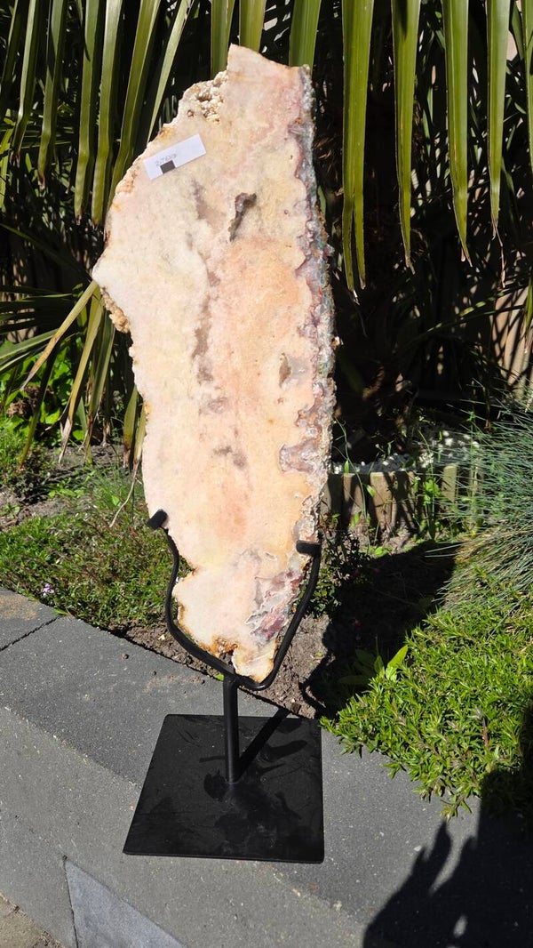 Unieke en prachtige roze amethist slab van 2,7 kg. Dit indrukwekkende stuk is 54 cm hoog en 14 cm breed, perfect als decoratief element in elk interieur. De zachte roze tinten en natuurlijke kristalformaties maken dit een ware blikvanger. Ideaal voor verzamelaars of als bijzonder cadeau.