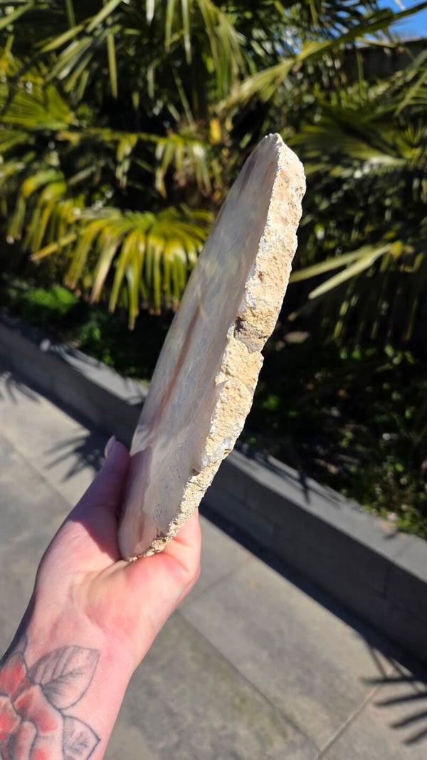 Prachtige extra grote agaat schijf van 1,4 kg en afmetingen van 23 x 20 cm. Deze indrukwekkende schijf toont de natuurlijke schoonheid van agaat met zijn unieke patronen en kristalstructuren. Perfect als decoratief object in huis, kantoor of praktijk, of te gebruiken voor meditatie en healing. Een ware blikvanger en een must-have voor liefhebbers van mineralen en edelstenen.